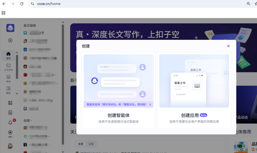 - 社交媒体营销:选择扣子空间或扣子开发平台,利用其与抖音/微信生态的集成优势。
