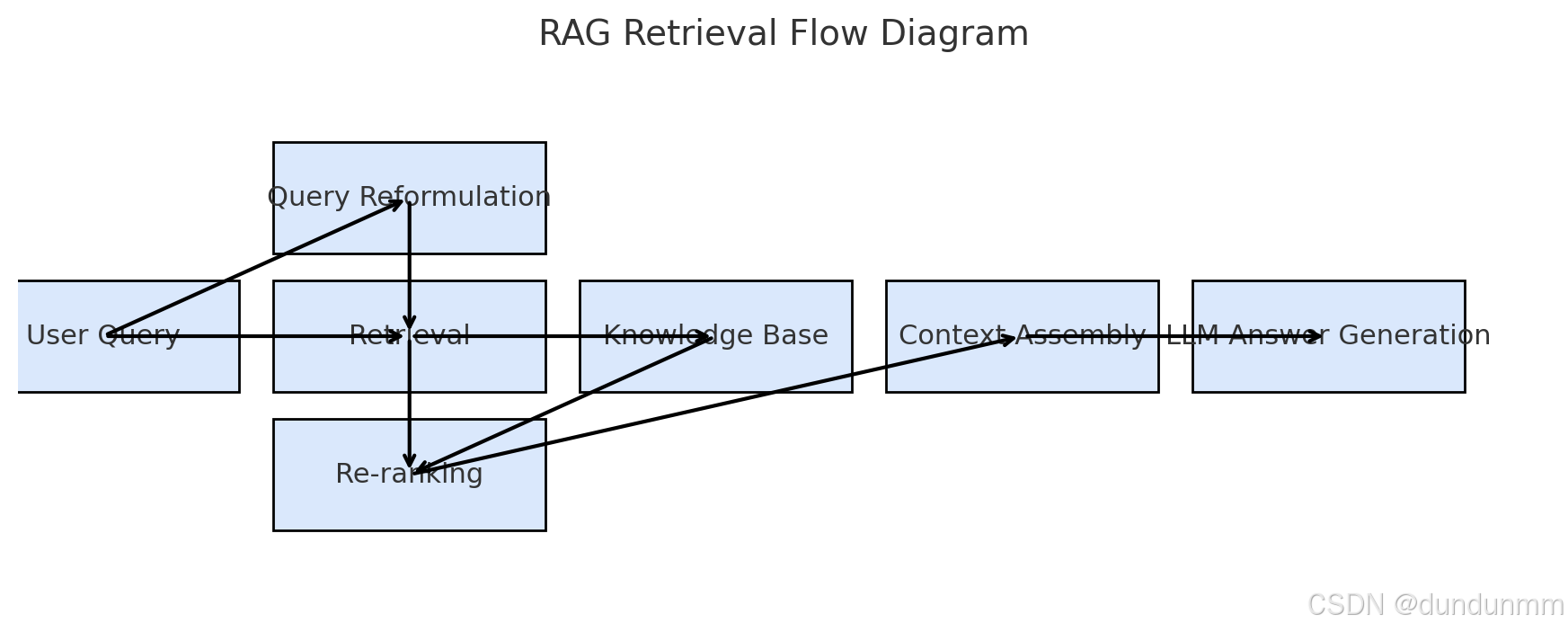 用户问题 → 查询改写 → 检索(文档/知识库/向量库)