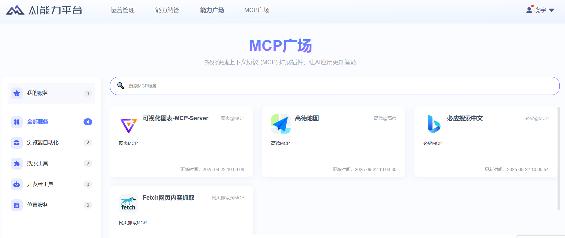 上周产品需求是集成阿里的MCP工具,官方的地址:https://www.modelscope.cn/mcp