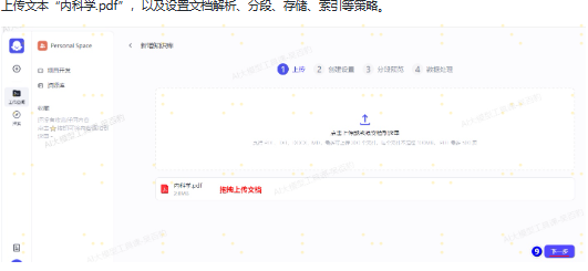 下面以本地文档方式上传pdf文件为例,演示创建文本知识库。