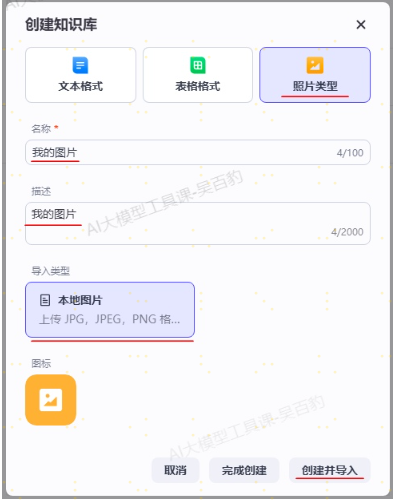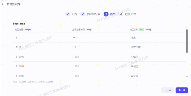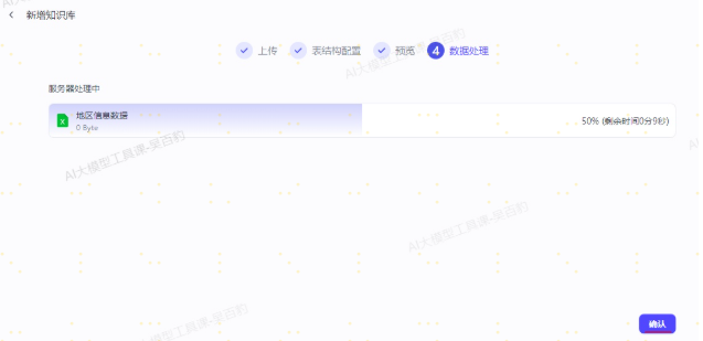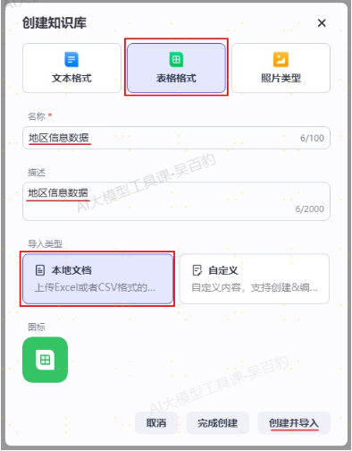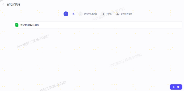 下面以本地文档方式上传xlsx文件为例,演示创建表格知识库。
