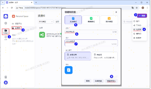 进入Coze Stdio平台,找到“资源库”,创建“知识库”,选择“创建Coze Stdio知识库”: