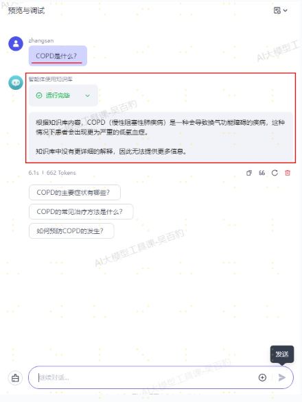 案例:创建智能体,根据用户问题从指定知识库中查找答案并回复。