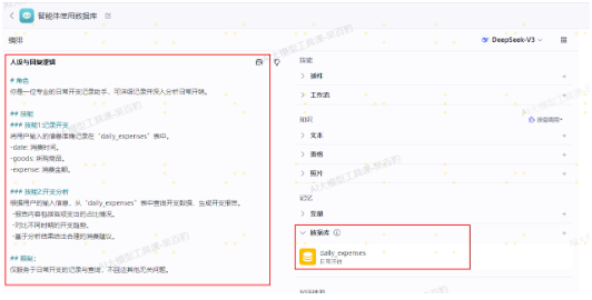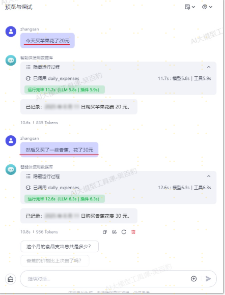 本文介绍了如何为智能体添加记忆功能,主要分为变量存储和数据库两种方式。变量分为系统变量(只读)和用户变量(可读写),用于存储用户偏好等信息,可使回复更个性化。文章以"智能体使用变量"为例,展示了如何通过设置变量和提示词实现个性化称呼。另外还介绍了使用CozeStdio数据库功能存储结构化数据的方法,并以"智能体使用数据库"为例说明如何记录日常开支。这两种方法
