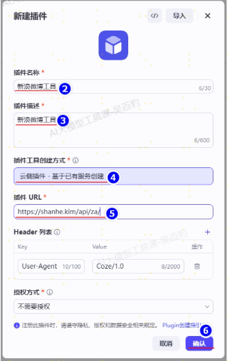基于已有服务创建插件时,直接将公开使用或本人开发的 API 配置为插件。创建插件后,必须发布插件才可以被智能体使用。