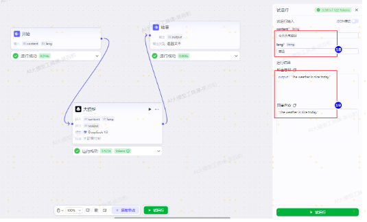 为了保证业务逻辑实现符合预期,单击试运行测试工作流的执行。