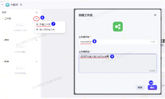 在业务逻辑界面,找到工作流,然后单机“+”,新建工作流。