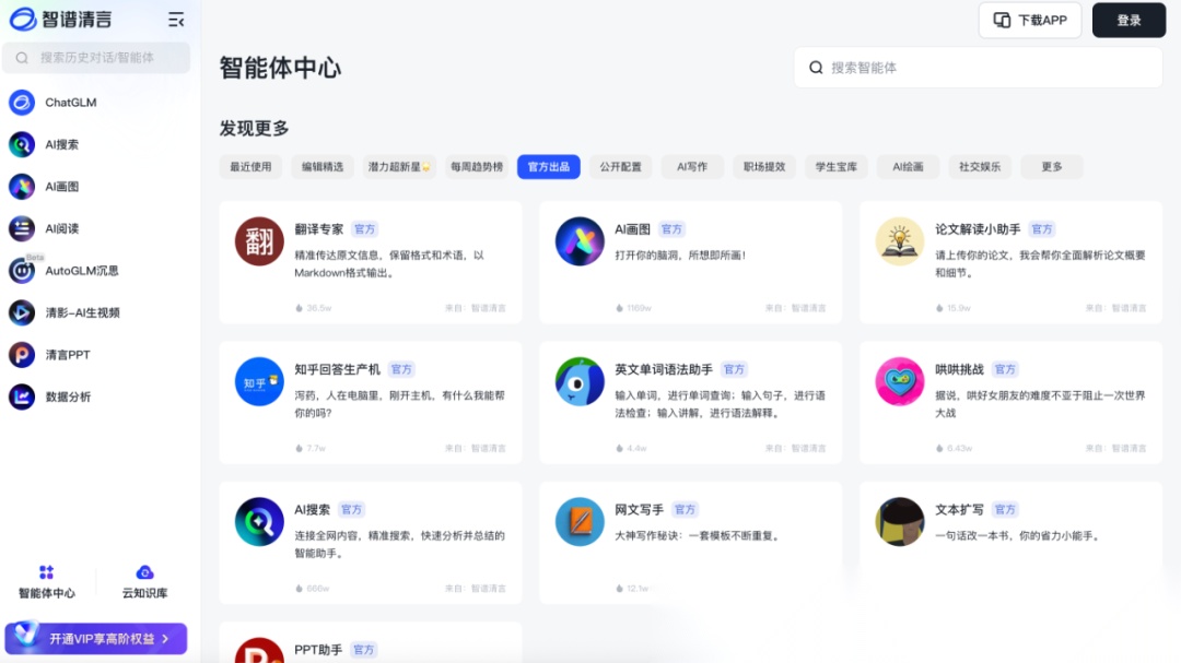 一句话介绍:基于智谱大模型的语言智能体,专注中文知识问答、文本生成与推理。