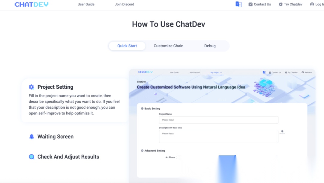核心优势:AIAgents群体协作开发;低门槛启动(输入项目名+角色设置);高效应用生成。