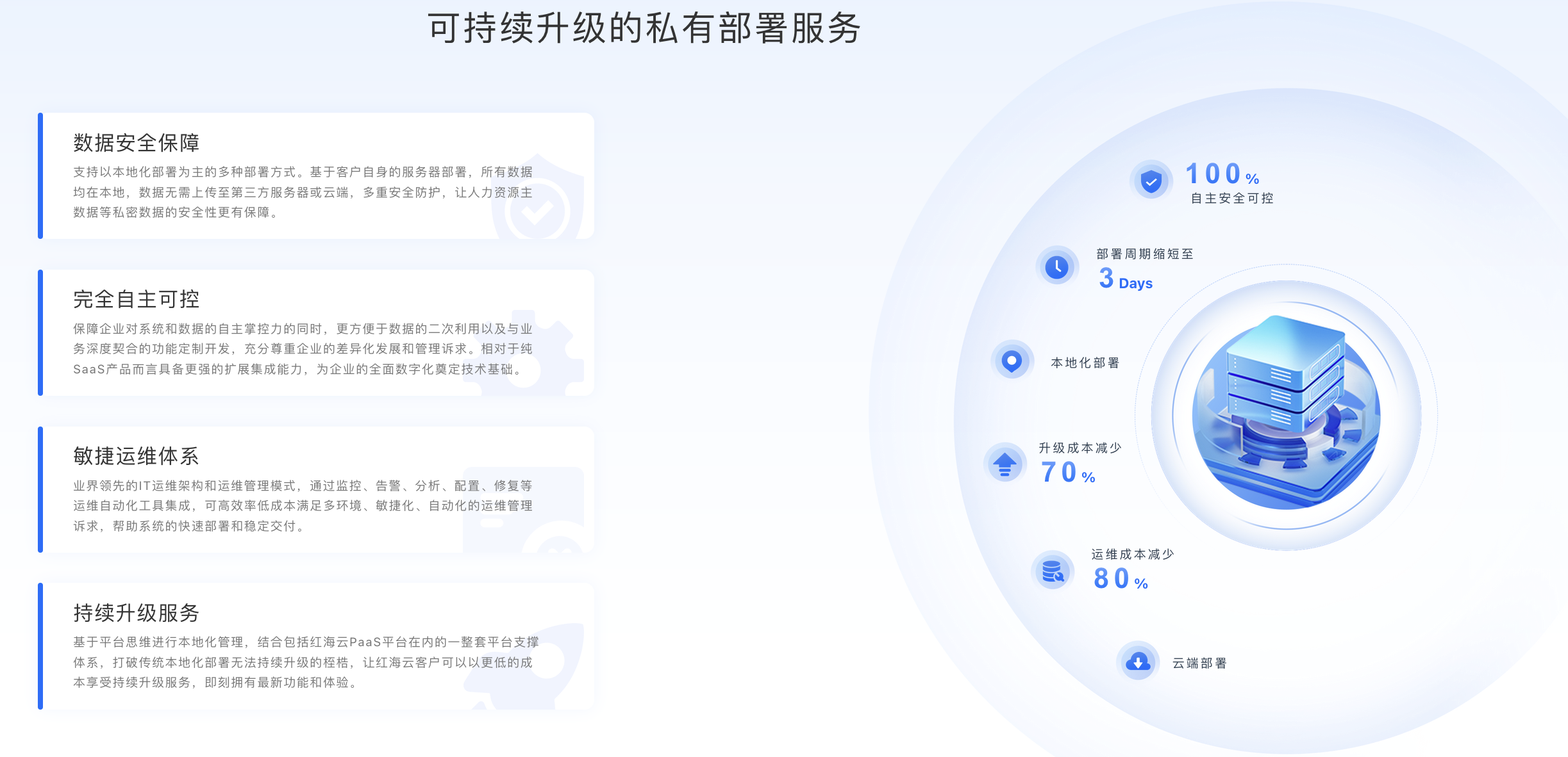这些挑战共同决定了银行对新一代HR系统的期待——既要有强大的技术支撑、灵活定制,又必须满足严苛的合规安全标准,并具备高效集成能力。红海云正是在这种复杂业务环境下,凭借对行业痛点的精准把握和技术创新,为银行客户提供了切实可行的解决路径。