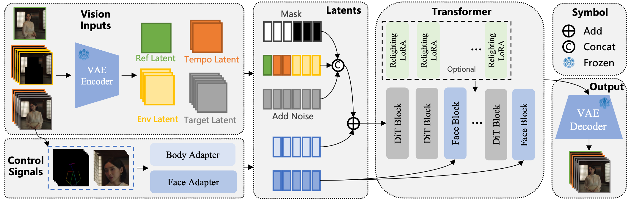 Wan-Animate采用统一框架实现全面的动作和表情复刻,其核心是基于深度学习的视频生成模型。它利用大型参数模型(如Wan2.2-Animate-14B,一个140亿参数的模型)来处理复杂的视觉和动态信息。特别地,Wan-Animate能够进行“holistic replication”,即对角色整体运动和表情进行精确的复制。在某些版本中,它还利用了ControlNets等技术来增强对生成视频的控制,确保更好的角色一致性。音频驱动的视频生成功能则依赖于先进的音频特征提取和映射技术,将声音信息转化为视觉上的面部和身体动画。