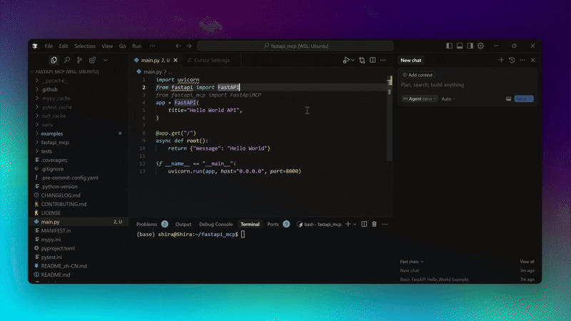 - 零配置部署:用户只需将 FastAPI-MCP 添加到现有 FastAPI 应用中,即可快速启动 MCP 服务器,无需复杂配置。