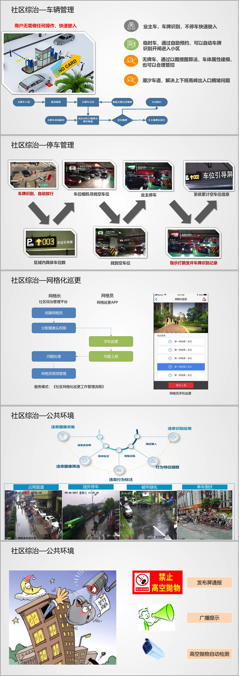社区管理功能丰富且实用。全景监控与人员管理方面,实现全时全景监控,借助智能人脸识别技术对特殊人员重点监控,智能交互摄像头还能记录社区美好事物。车辆管理具备智能道闸、车位管理和监测功能,实现车辆的全方位智能管控。文化管理通过智能信息展示屏进行信息发布和人员结构分析,支持多渠道推送和自动录播,丰富居民精神文化生活。