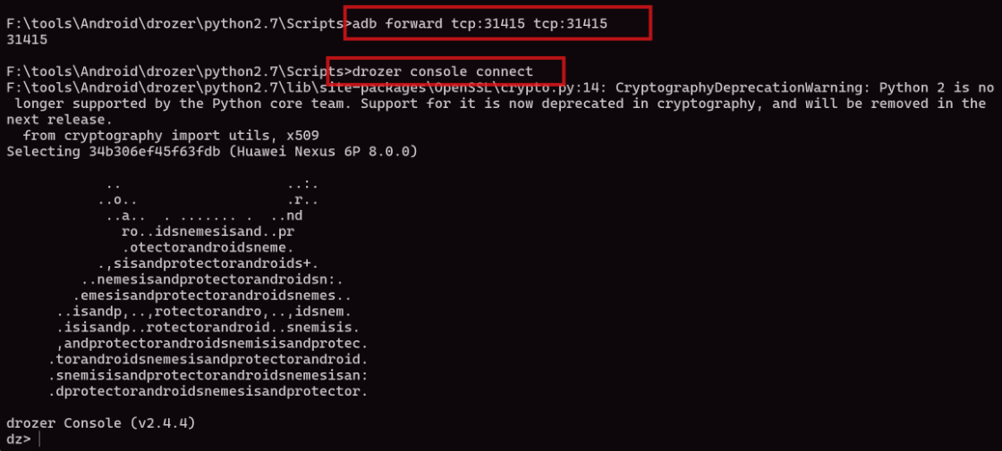 在电脑端通过adb实现端口转发,并成功启动drozer