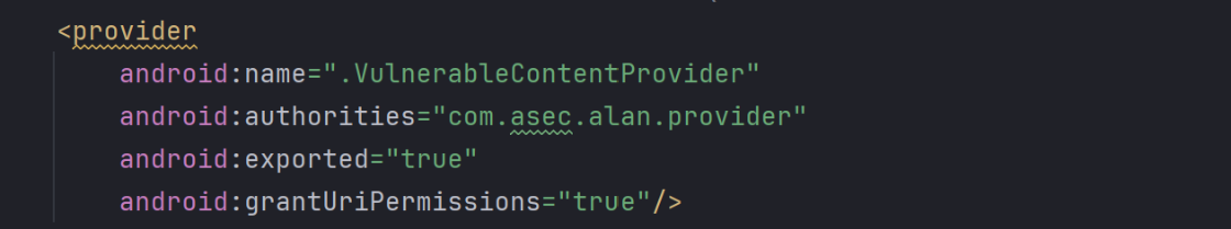 Content Provider 未限制访问权限,导致应用内敏感数据(如用户信息、数据库)可被任意读取。
