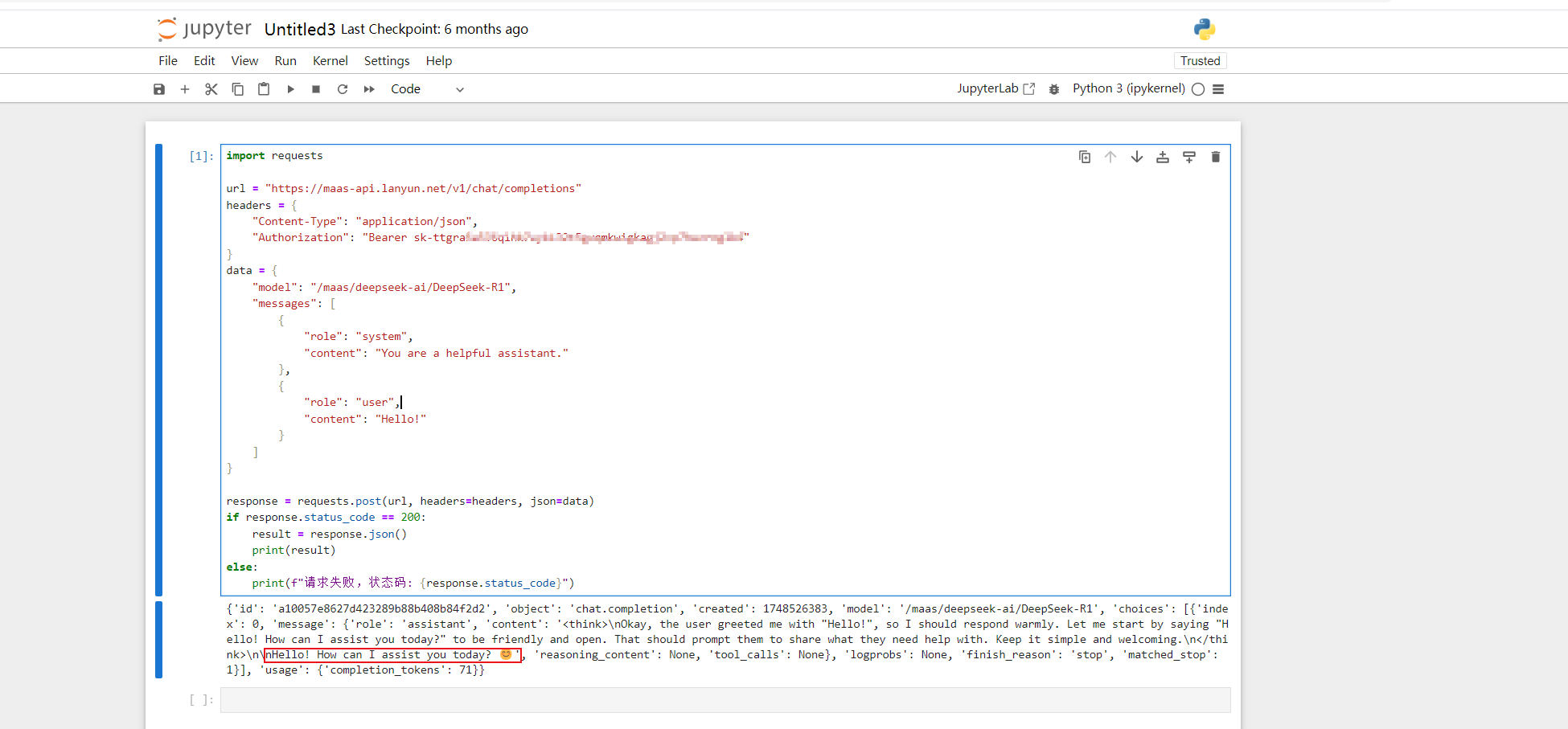 利用Jupyter Notebook环境我们先试试,模型API是否调用成功