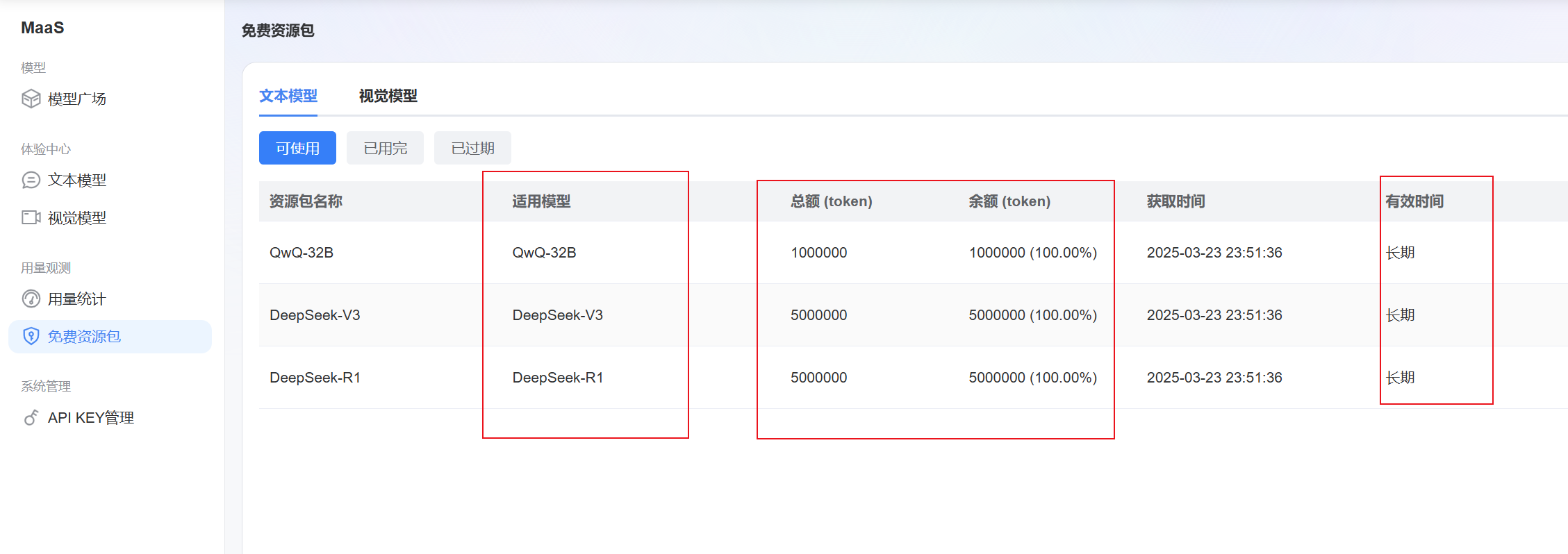 蓝耘 Maas 平台提供了多种大模型供选择,如 DeepSeek - R1、DeepSeek - V3、QwQ - 32B 等。