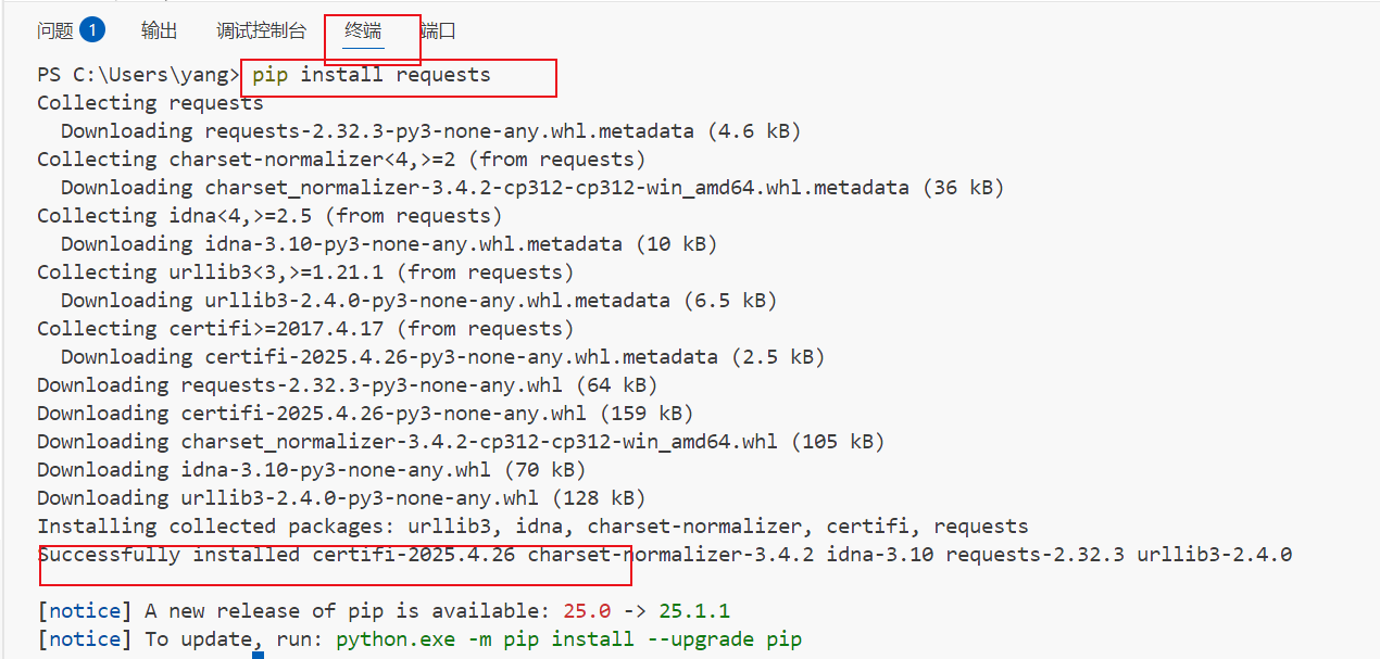 就能完成库的安装,看见有“Successfully installed”就是安装成功了。