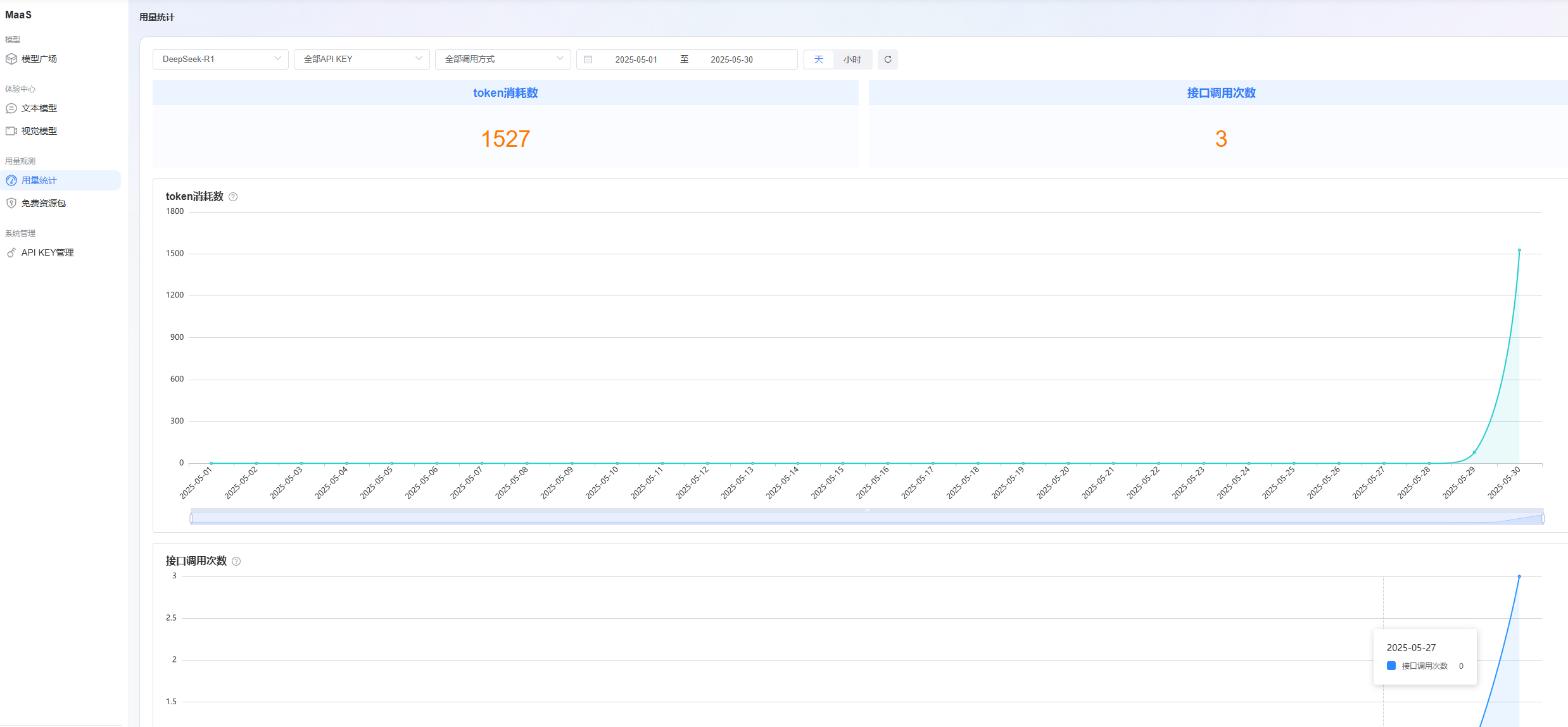 平台可以看到调用API的数量和token用量,实时监控并更新,方便我们查看