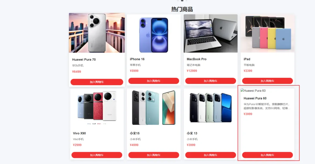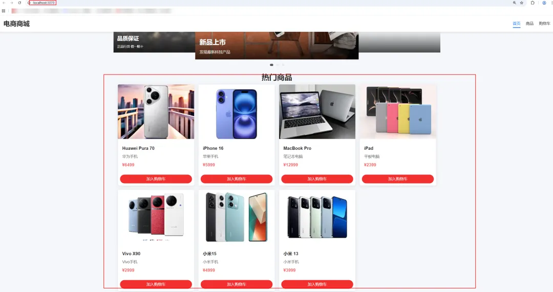 前端页面也可以刷新出来上架的商品了。如下图所示: