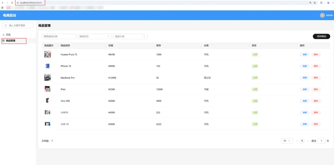 除了添加商品功能,还可以编辑和删除,因功能较为简单,此处不再赘述,开发者们可以根据自己的需求进行测试和二次开发。