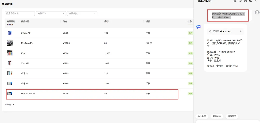 (1)创建 MCP Server 修改 Products.vue 在 shop->packages->shop-admin->/src/views/Products.vue 文件中加入以下代码: