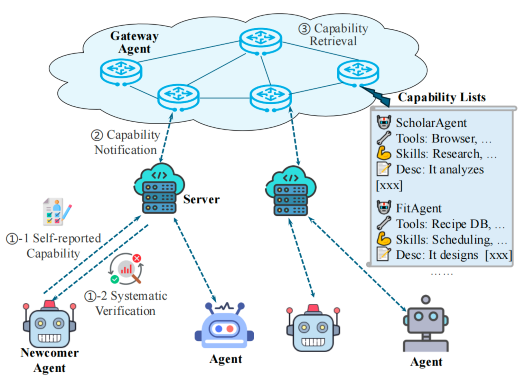 能力发现是IoA协作的第一步,只有明确谁有什么能力,才能谈后续分工。它包含能力评估(验证能力真实性)、能力通知(同步能力变化)、能力检索(精准匹配需求)三个核心环节,解决信息不对称问题。