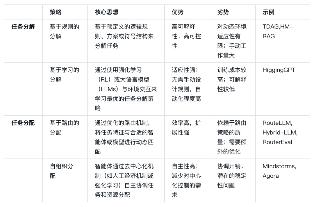 复杂任务无法由单个智能体完成,需通过任务分解、任务分配两步实现: