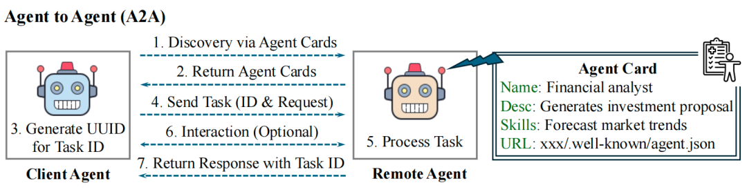 A2A采用“点对点(P2P)”模式,流程分四步: