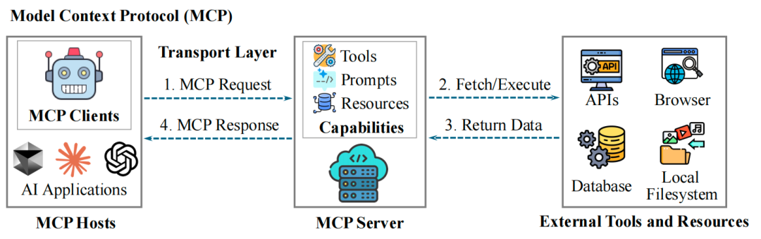 解决大模型智能体如何安全、便捷调用外部资源的问题,相当于给智能体一个“标准化工具插头”,让它能插在不同“工具插座”上(如天气API、医疗数据库)。
