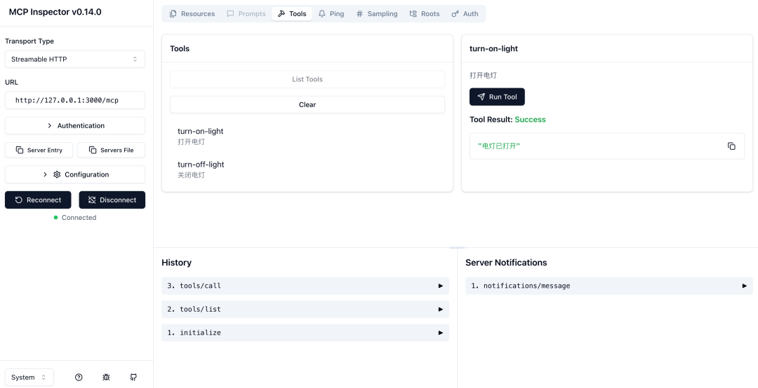 工具打开电灯 - 再次读取电灯状态以验证变化