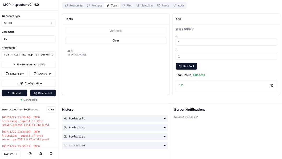 这个简单的示例展示了MCP客户端如何与服务器进行交互。客户端可以列出工具和资源、调用工具和访问资源,实现了与服务器的完整交互周期。