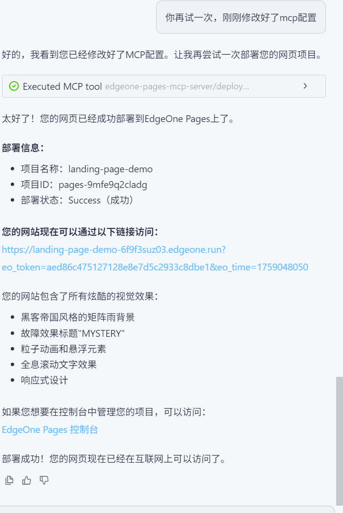 这样就可以直接访问而且可以在edgeone控制台管理自己的网站