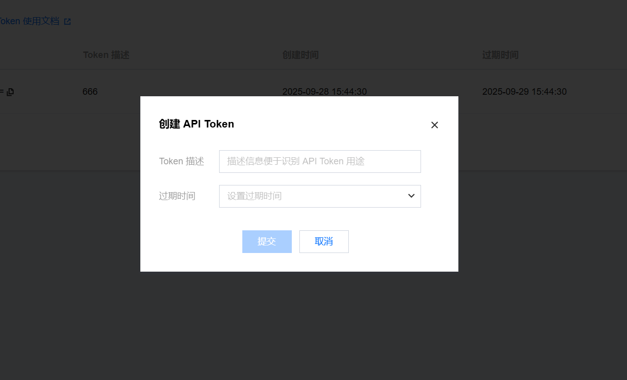 创建的名字和有效期都随意填,填完以后就给你冒出来一个API,点击右侧的复制复制下来,