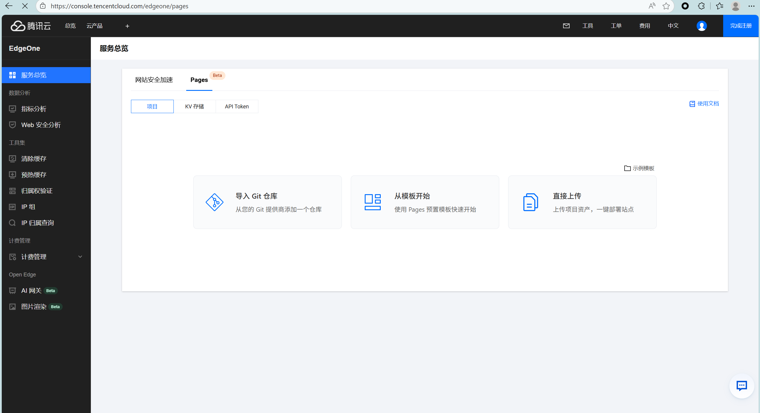我来交大家怎么配,首先打开edgeone的官网边缘全栈开发平台 - EdgeOne Pages ,