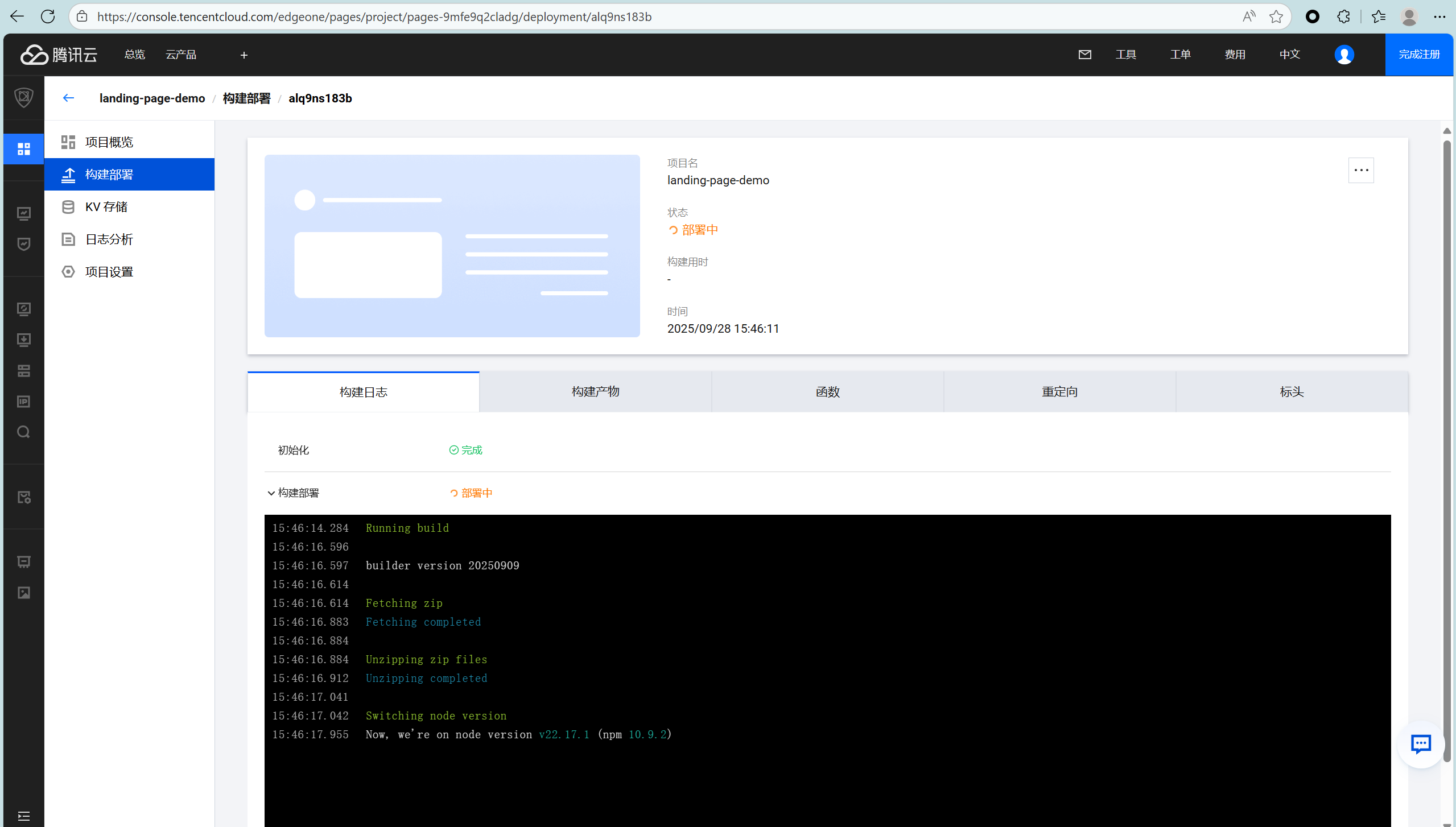 "EDGEONE_PAGES_PROJECT_NAME": "替换为你的刚刚创建的示例模板项目的名称我的就叫landing-page-demo"