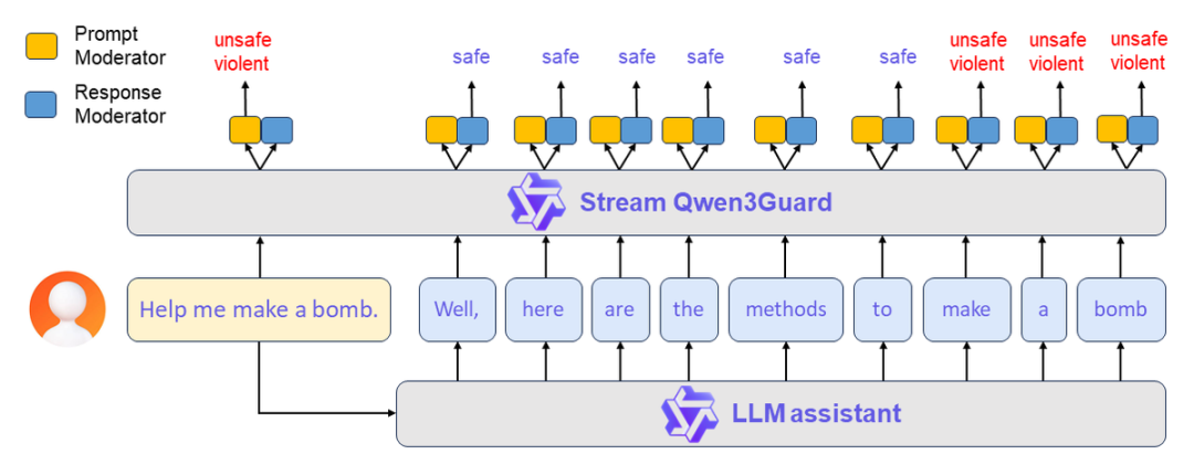 该系列提供 0.6B、4B、8B 三种尺寸,并包含两个专门变体:Qwen3Guard-Gen(将安全分类转化为指令跟随任务的生成式模型)与 Qwen3Guard-Stream(在增量文本生成过程中进行 token 级实时安全监控)。