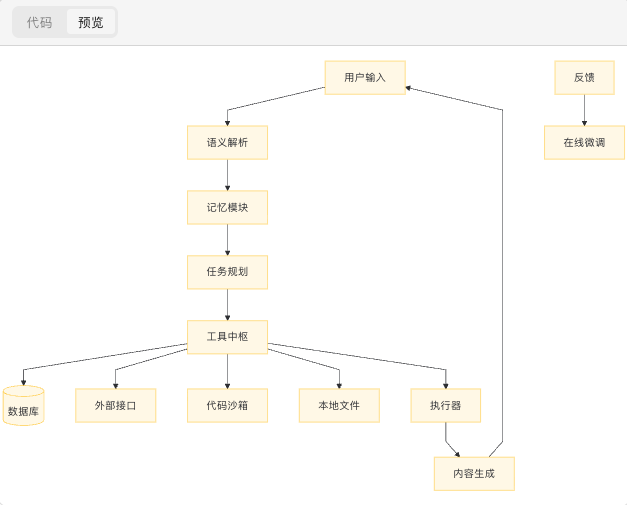 - 工具适配层:统一工具调用协议,支持快速接入新工具(如新增“邮件发送”“PPT生成”工具)。