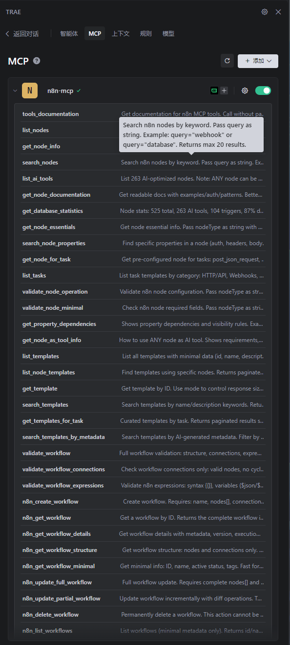 AI有了这个,就从一个啥都懂点的“通才”,摇身一变成了专业的“n8n专家”。它对每个节点的理解,不再是模糊的猜测,而是精确的查询。