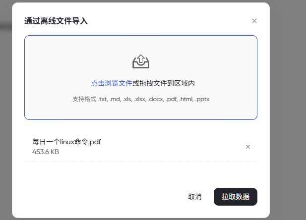 - 支持上传Word、PDF、Markdown等格式