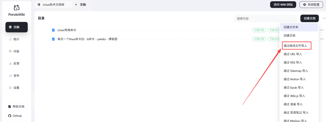 PandaWiki提供多种方式来充实你的知识库: