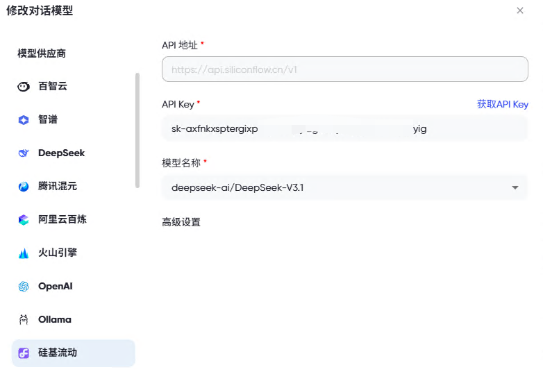 PandaWiki支持多家AI服务商,这里我选择的硅基流动: