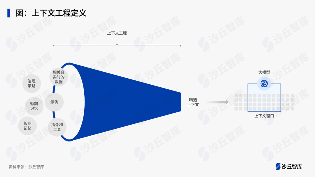 上下文工程(Context Engineering)是一种系统性的方法,用于设计、优化和管理提供给大模型的上下文信息,旨在提高输出的准确性、相关性、可靠性并优化成本。通过构建一个能够动态提供知识和约束的全面系统,上下文工程能够支持大模型在复杂多步骤任务中的高效执行,从而提升整体性能。(详见《2025年上下文工程市场指南》)