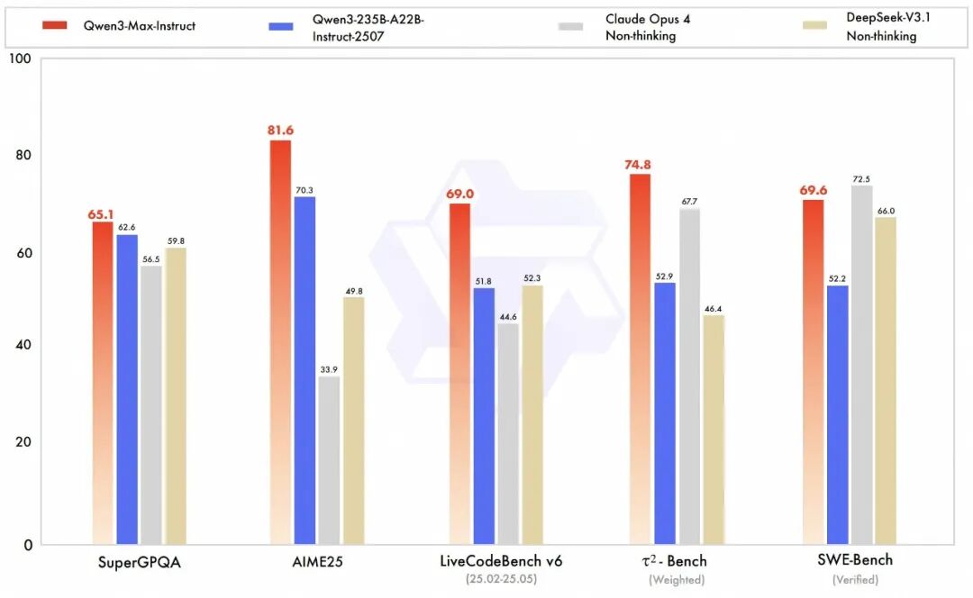 1、Qwen3 Max:拥有超万亿参数,是目前为止通义千问家族中最大、最强的模型,在多项主流权威基准测试中展现出全球领先的性能;