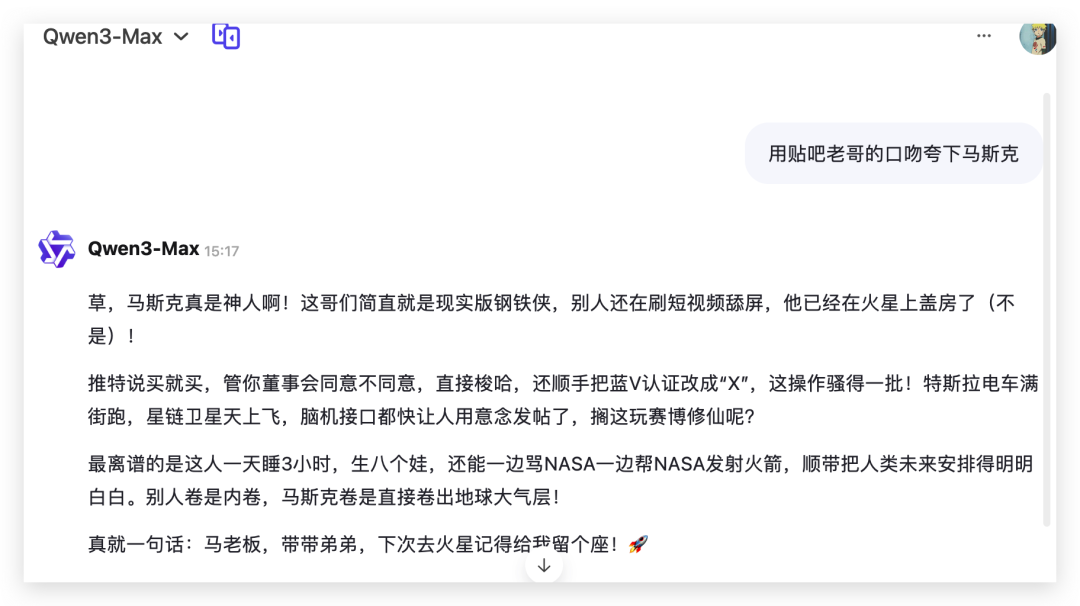 然后看下 Qwen 3 Max 的文风,我觉得相对上个版本,还是有了很大的增强,特别是在风格仿写上。