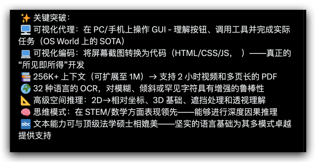 4、Qwen3-VL:这是 Qwen 系列迄今为止最强大的视觉理解模型,它能操作电脑和手机界面,识别 GUI 元素、理解按钮功能、调用工具、执行任务,目前已开源。