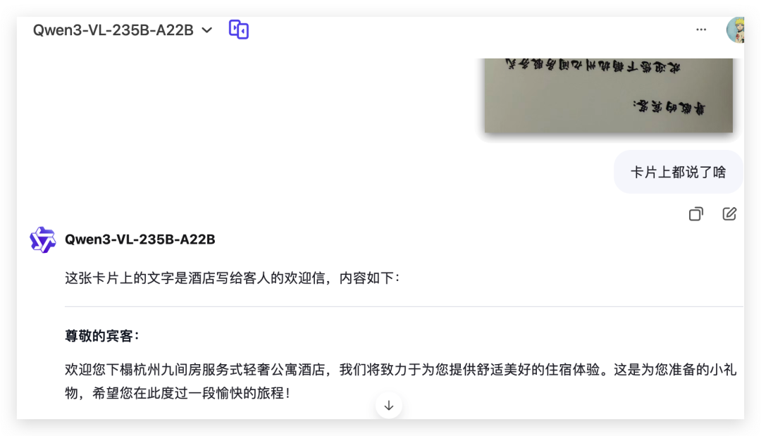 Qwen 3-VL 很快能正确识别,这里需要做的第一步是要将文字旋转摆正后再 OCR 识别。