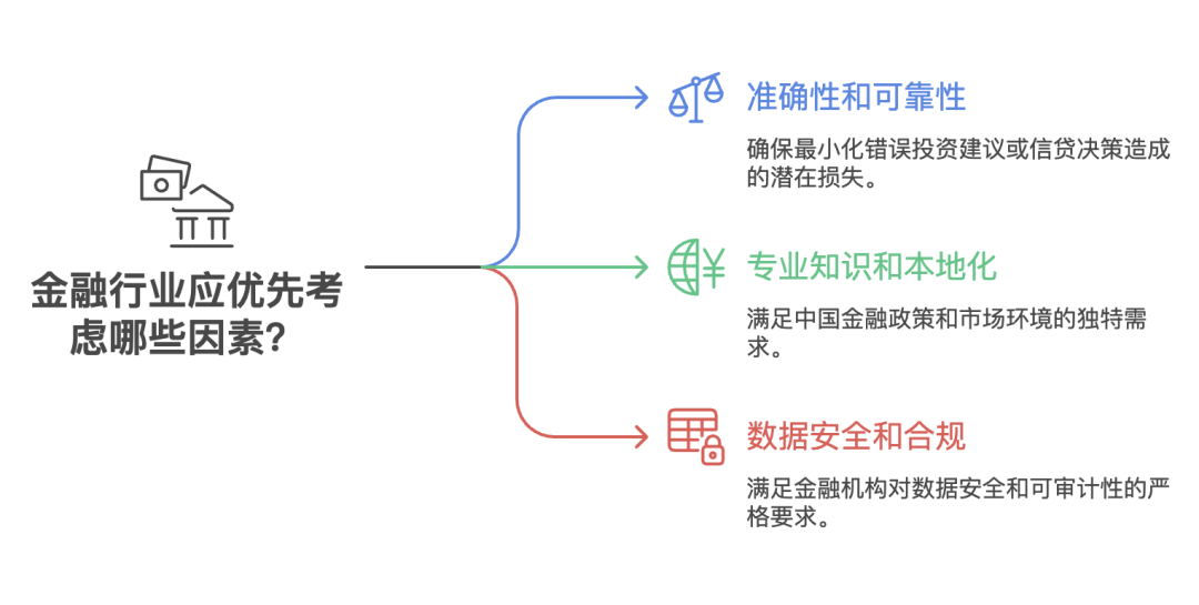 这种选择背后有清晰的逻辑。首先,金融行业的容错率极低,一个错误的投资建议或信贷决策可能造成巨大损失,因此准确性和可靠性必须放在首位。其次,金融知识具有高度的专业性和地域性,中国的金融政策、市场环境与国外存在显著差异,简单套用国外模型难以满足本土需求。最后,金融机构对数据安全和合规有严格要求,需要一个可控、可审计的 AI 系统。