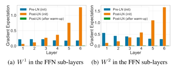 - 缺点:Post-LN 在深层的梯度范式逐渐增大,导致使用 post-LN 的深层 transformer 容易出现训练不稳定的问题
