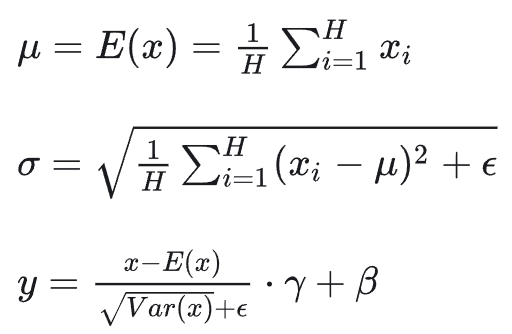 Layer Norm 会对输入的每个 token 向量 按维度标准化,使其均值为 0、方差为 1,然后再通过 γ,β 学习恢复合适的分布。